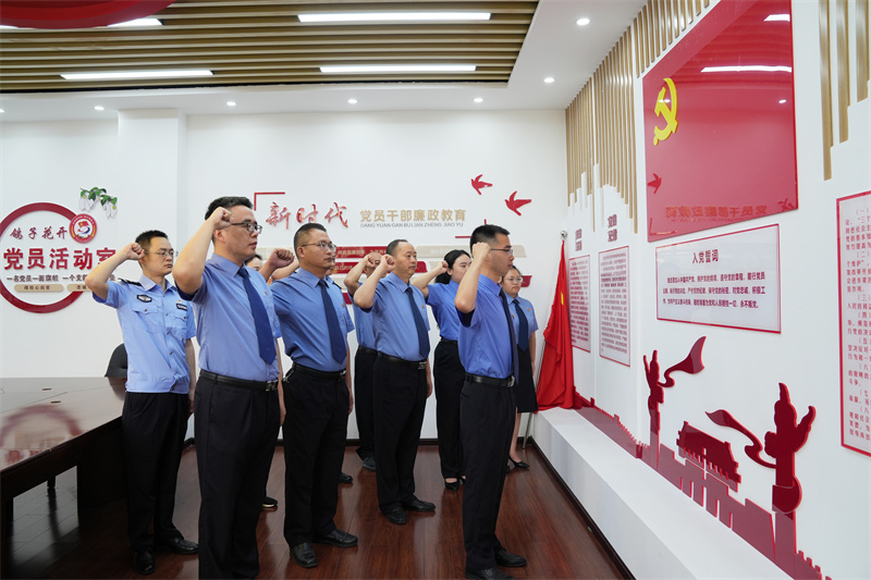 活动在庄严的重温入党誓词仪式中拉开序幕。院党组书记、检察长张涛涛领誓,全体党员面向鲜红的党旗,高举右拳,字字铿锵,重温入党誓词。铮铮誓言响彻会场,深刻表达了全体检察人员对党的无限忠诚和为共产主义事业奋斗终身的坚定信念,进一步擦亮政治底色,强化党员身份意识和责任意识。