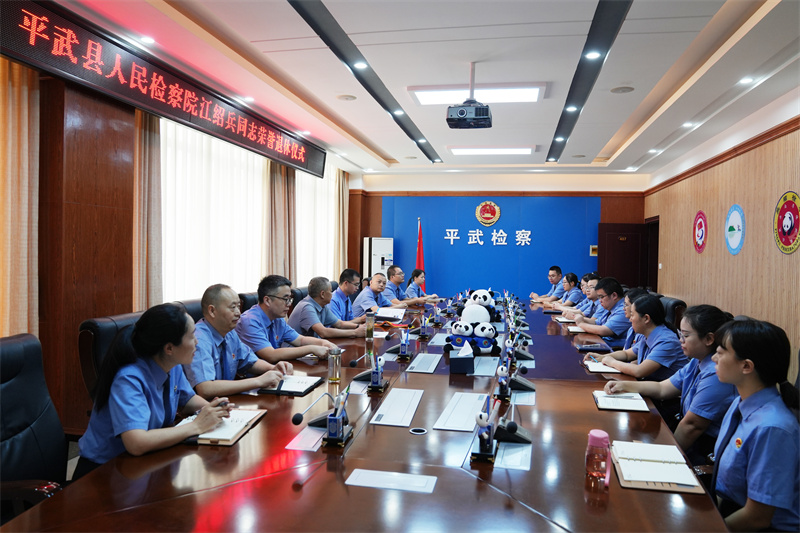 9月10日,平武县人民检察院为江绍兵同志举行荣休仪式,致敬江绍兵同志坚守法治信仰、奉献检察事业的峥嵘岁月。院党组书记、检察长张涛涛主持仪式并讲话,院领导班子成员、各部门干警代表参加。