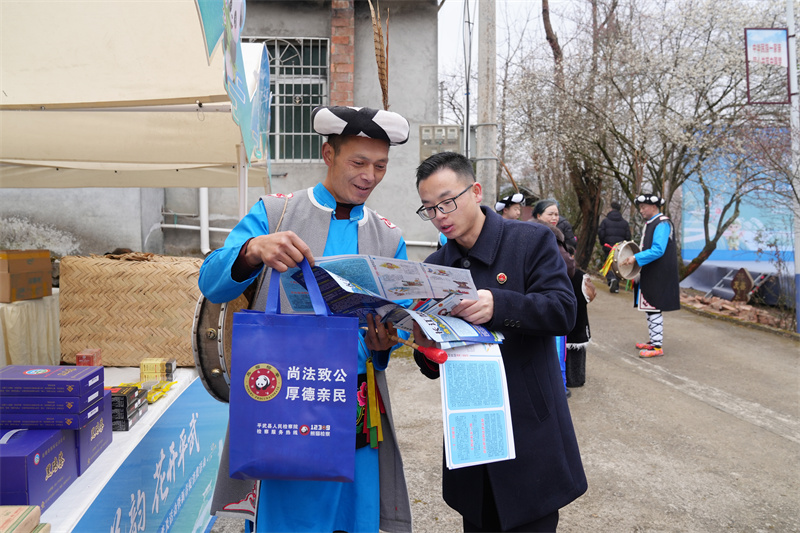 2月8日,平武县2026年文化科技卫生“三下乡”集中服务活动在平通羌族乡桅杆村印象梅林景区举行,平武县检察院积极响应号召,深入基层开展法治宣传。